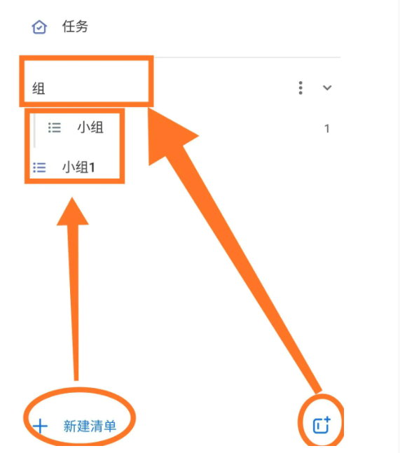 2.是左下角的“新建清单”,我觉得有点描述不对,应该叫“小组”,点击,就可以创建一个“小组”,并把“小组”拉进“组”;大家可以细看,“小组”与“小组1”位置的区别,